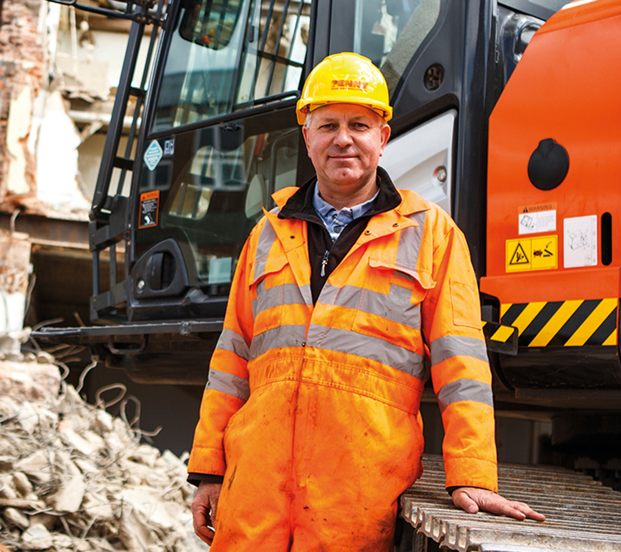 Английская компания по демонтажу и сносу RM Penny владеет гидравлическим экскаватором ZX350LC-5, который обеспечивает высоту разрушения в 23 метра.